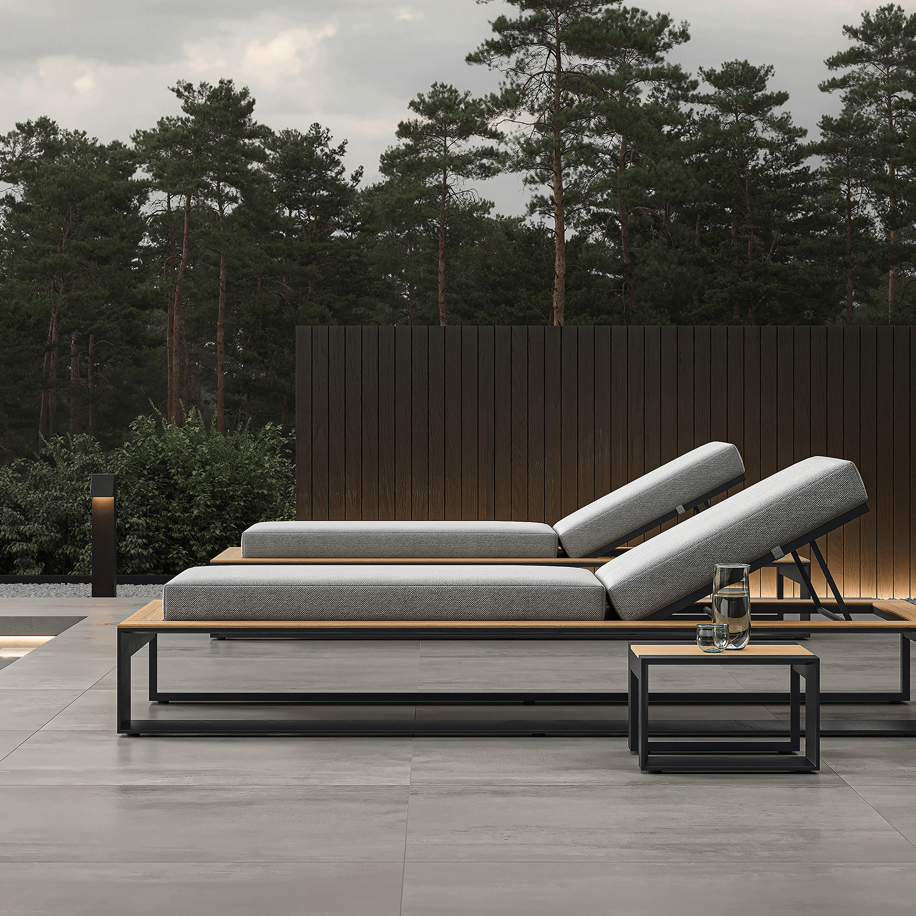This N5 Collection Side Table features a sleek dark grey powder coated aluminium frame complemented by warm teak detailing. The juxtaposition of materials creates a striking visual contrast, blending industrial appeal with organic warmth. The table’s minimalist silhouette is defined by clean lines and an contemporary design that accentuates the natural beauty of the teak wood. The natural untreated teak’s golden-brown tones and distinctive grain patterns bring a touch of nature’s artistry to this piece.